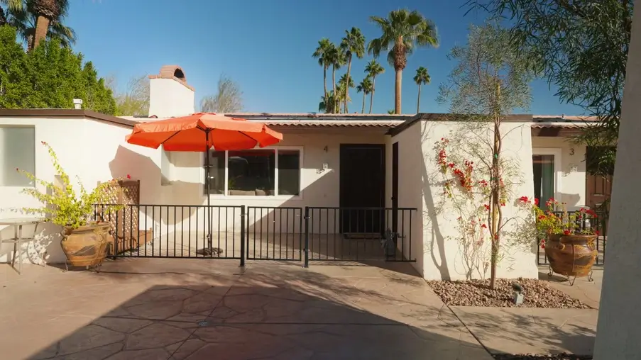 Surrounded by palm trees, desert blooms, and mountain views, the garden and courtyard invite quiet reflection and connection. Shaded seating areas, walking paths, and the nearby pool offer places to pause, breathe, and simply be.